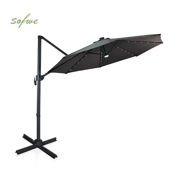 Parasol déporté solaire à LED, rotation à 360 degrés.