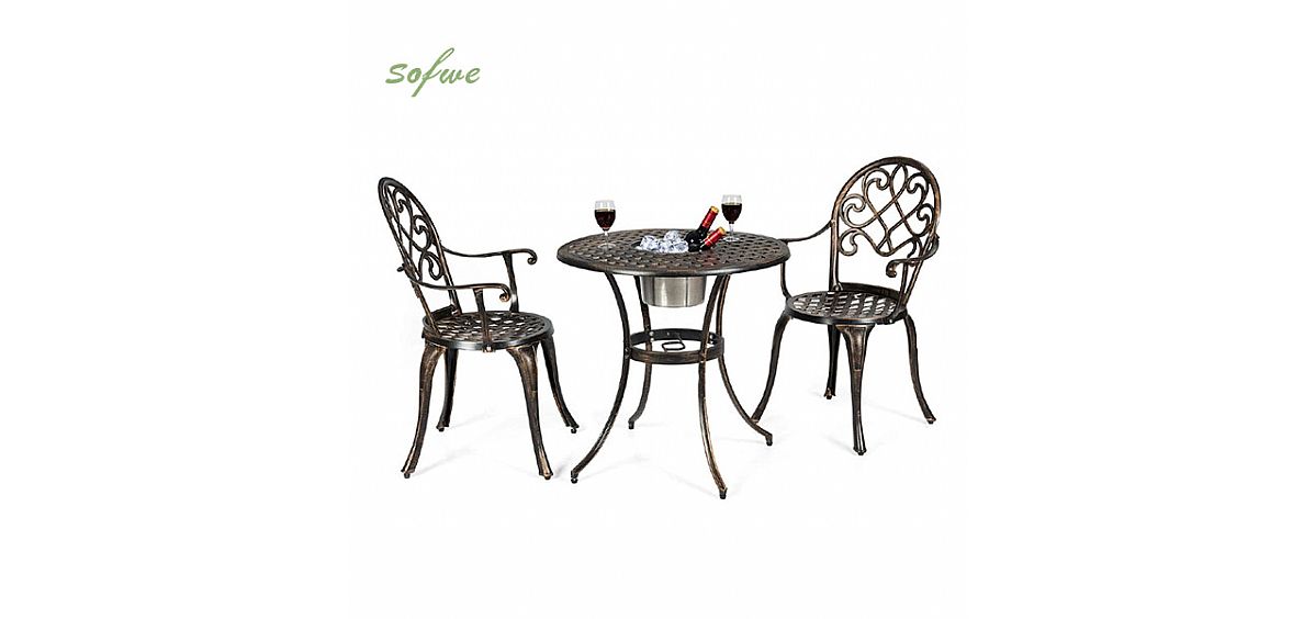 - Ensemble de table de bistrot exquis et antique : cet ensemble de bistrot a un design élégant avec une finition bronze antique. Il comprend deux chaises et une table. Les trois pièces de cet ensemble bistro ajoutent de l'élégance à votre terrasse, balcon, façade ou arrière-cour. La table est faite de graphiques carrés, tandis que la chaise est créée avec un dossier fleuri distinctif et un siège rhomboïde.
