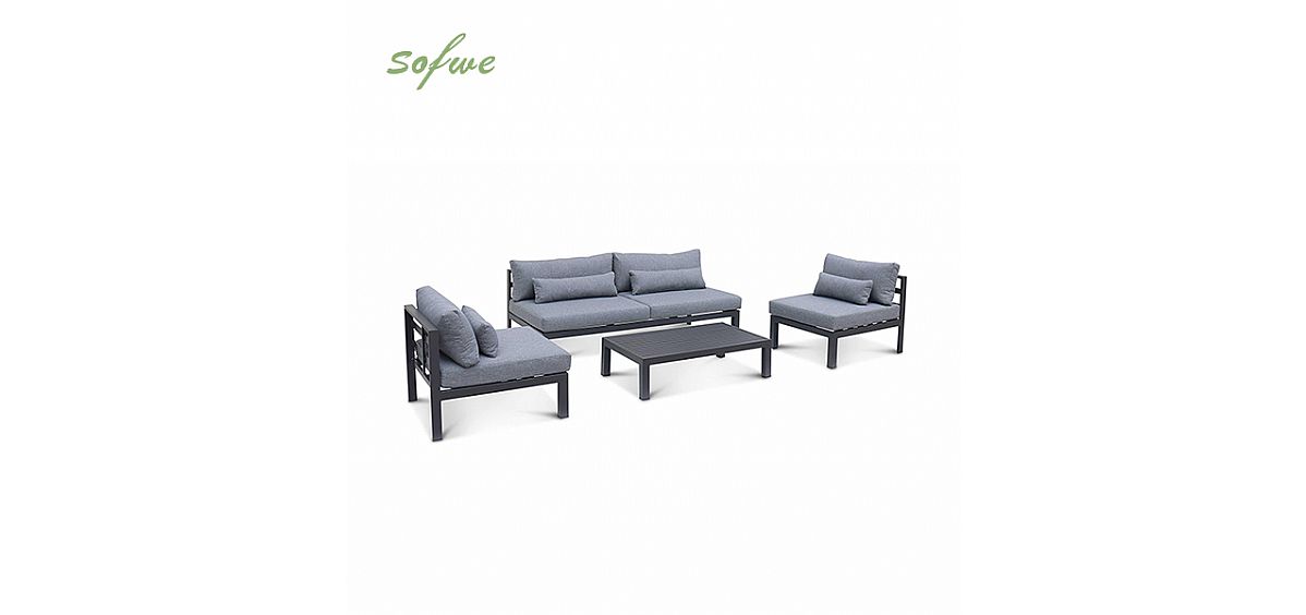 Soigneusement conçu : il est fabriqué en aluminium, matériau robuste et durable. Sa caractéristique est son aspect moderne, qui peut être associé à n'importe quel style de décoration de cour, rendant votre cour plus à la mode et plus belle. Il est équipé de coussins épais et confortables, vous permettant de profiter d'un moment de repos confortable dans la cour. Son design minimaliste peut économiser de l'espace et rendre votre cour plus spacieuse et lumineuse. De plus, il peut également prévenir la pollution de l'eau et garder vos meubles propres pendant longtemps.